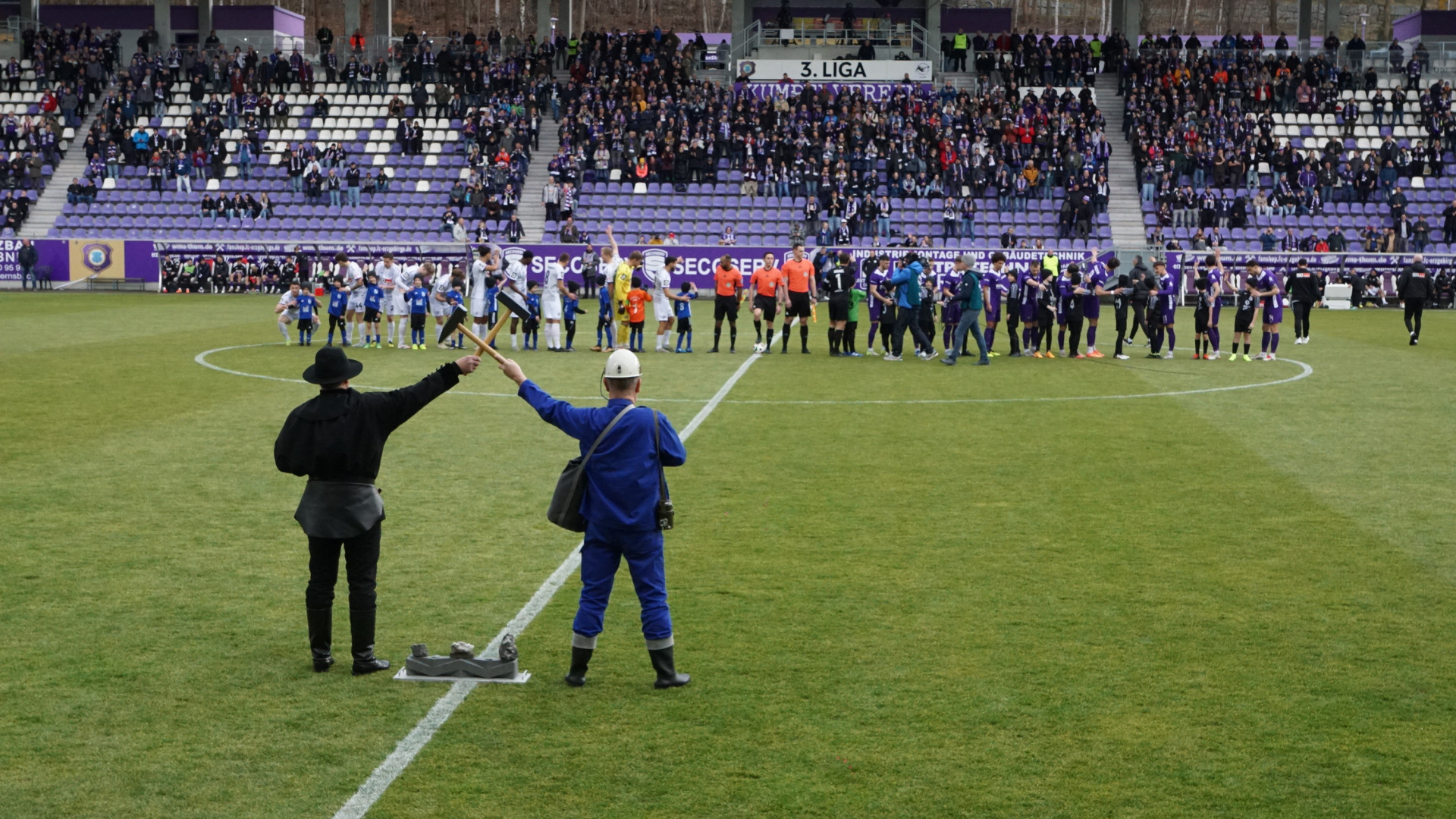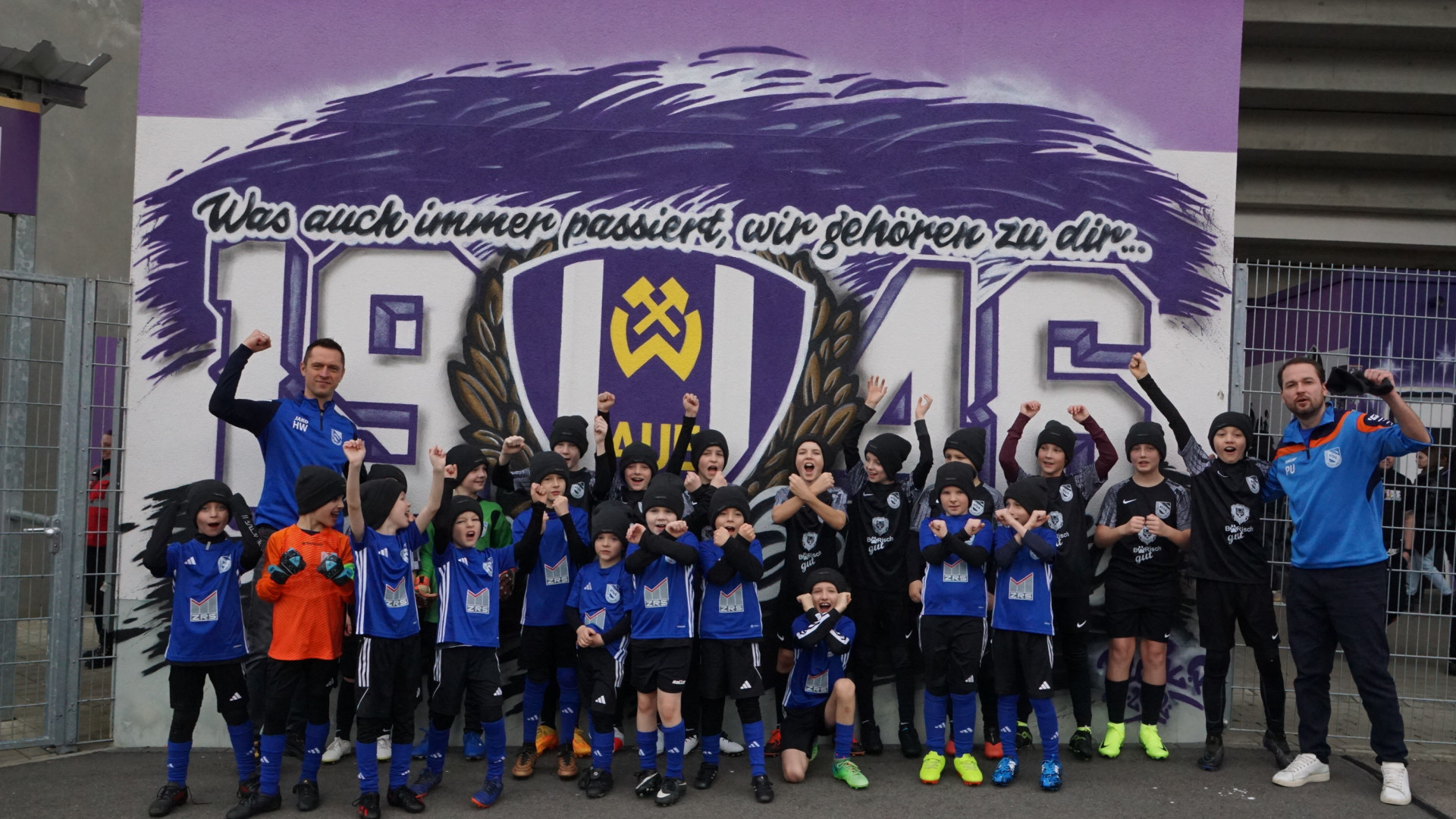 Glück auf! Am Samstag, den 25.01.2025, durften unsere Nachwuchskicker der F- und E-Jugend erstmalig den heiligen Rasen des FC Erzgebirge Aue betreten. Die Jungs & Mädels kamen in den Genuss, mit den Profis des FC Erzgebirge Aue und VFL Osnabrück einlaufen zu können. Bereits am Vormittag machte man sich mit 2 Bussen auf den Weg nach Aue. Nach ca. 1h Fahrt, erreichte man gegen 12 Uhr den Parkplatz in der Nähe des Stadions. Nachdem es gegen 13 Uhr in die Kabine zum Umziehen sowie zu einer kurzen Einweisung ging, folgten im Anschluss zahlreiche Fotos im und um das Erzgebirgsstadion. Die Nervosität der Kicker des ATSV stieg merklich an. Gegen 13:50 Uhr war es endlich soweit! Die Spieler kommen aus der Kabine und nehmen Aufstellung im Spielertunnel! Ein für viele Kinder ersehnter Traum geht in Erfüllung! Nach kurzer Zeit auf dem Rasen, erfolgte der Anpfiff!