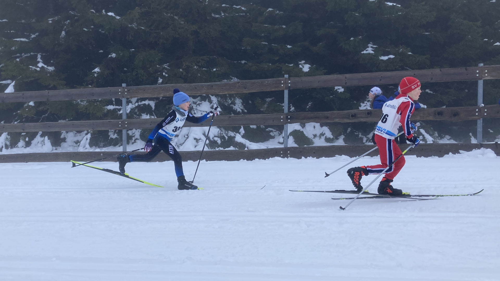 Am Sonntag galt es im Massenstart über längere Distanzen das umfangreiche Training der vergangenen Monate in die Loipe zu bringen. Souverän gelang das Lea Schmieder und Elina Reichel, die das „Doppel“ perfekt machten und sich mit einer zweiten Goldmedaille belohnten. In 16:45 min auf 5 km gewann Lea mit einem Vorsprung von 35 Sekunden vor Emma Kiesling vom VSC Klingenthal und Maxine Escher vom SSV Geyer. Elina hängte ihre Sportskollegin und -konkurrentin Frida Dost vom SV Neudorf in der Loipe über 3,7 km mit 25 Sekunden erneut ab. Zum doppelten Vizesachsenmeistertitel fuhr auch Lara Rudolph in der U13.
