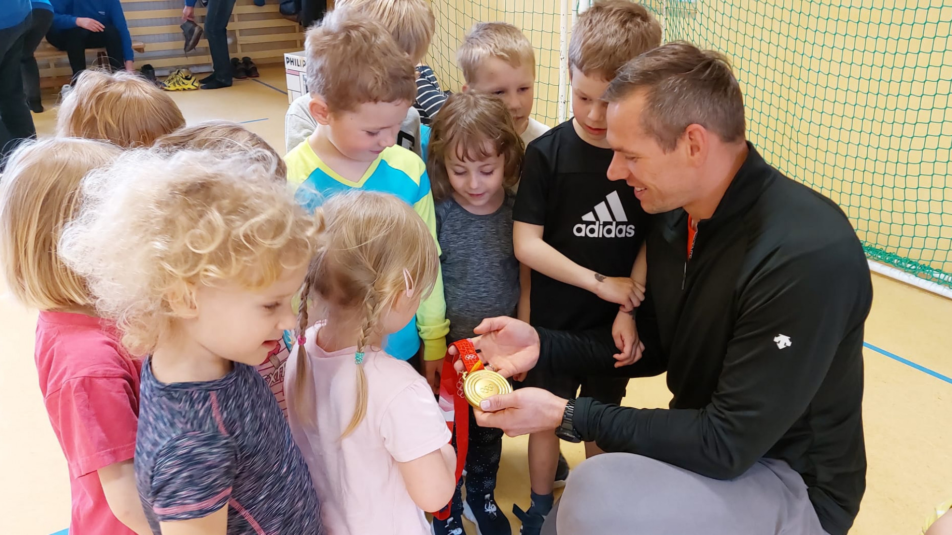 Nach einer gemeinsamen Erwärmung mit Candy gab es so manche Tipps von ihm an den einzelnen Stationen. Diese wurden im Rahmen der Kindergartenkooperation zwischen dem ATSV Gebirge/Gelobtland e.V. und der Kita Kinderland wieder von der Seniorensportgruppe der Abteilung Ski Nordisch vorbereitet und betreut. Nicht nur den Kindern hat es großen Spaß bereitet. Auch die ATSV-Senioren waren begeistert von den Leistungen der kleinen Sportler, wollten sie doch auch so erfolgreich sein wie ihr großes Vorbild. Und das ist ihnen gelungen: Alle 13 Kinder haben das Flizzy-Kindersportabzeichen erhalten. Nach der Siegerehrung konnten sie dann Candy‘s goldene Olympiamedaille aus Peking in den Händen halten und bestaunen.