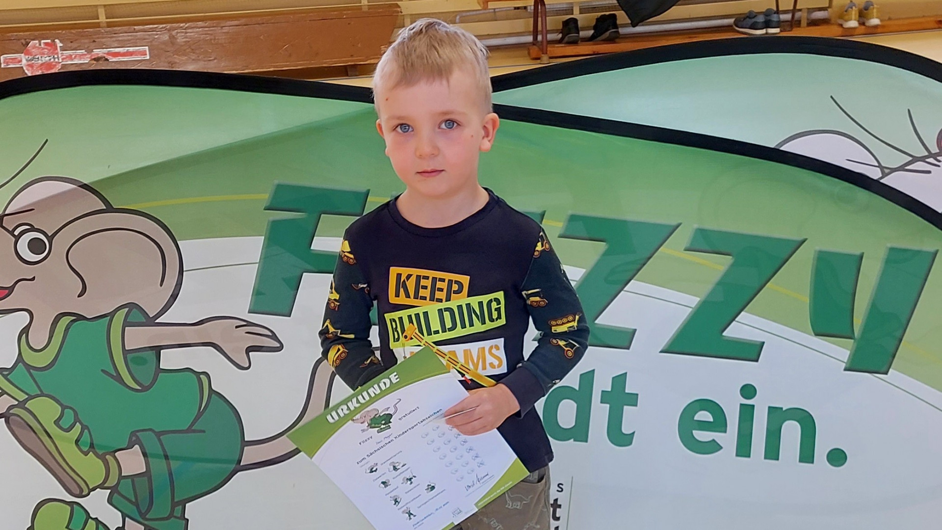 Das Sportabzeichen „Flizzy“ konnte allen Kindern überreicht werden. Paul Meyer, 4 Jahre alt, erhielt an allen Stationen volle Punktzahl und war somit das sportlichste Kind.